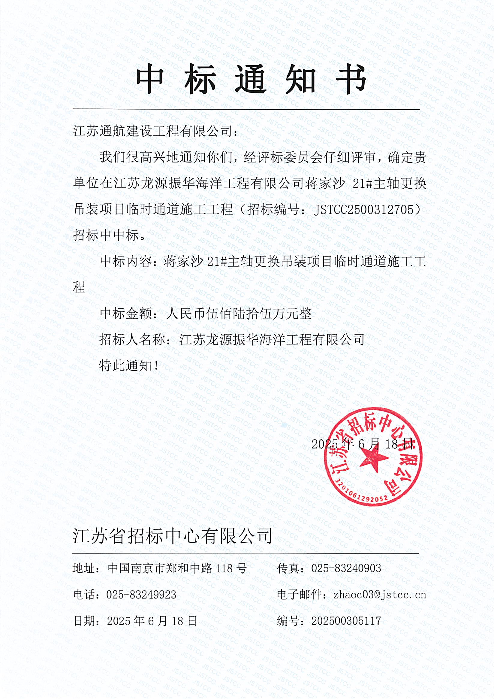 近日,蒋家沙21#主轴更换吊装项目临时通道施工工程完成招标,江苏通航建设工程有限公司以565万元中标,计划工期25天。