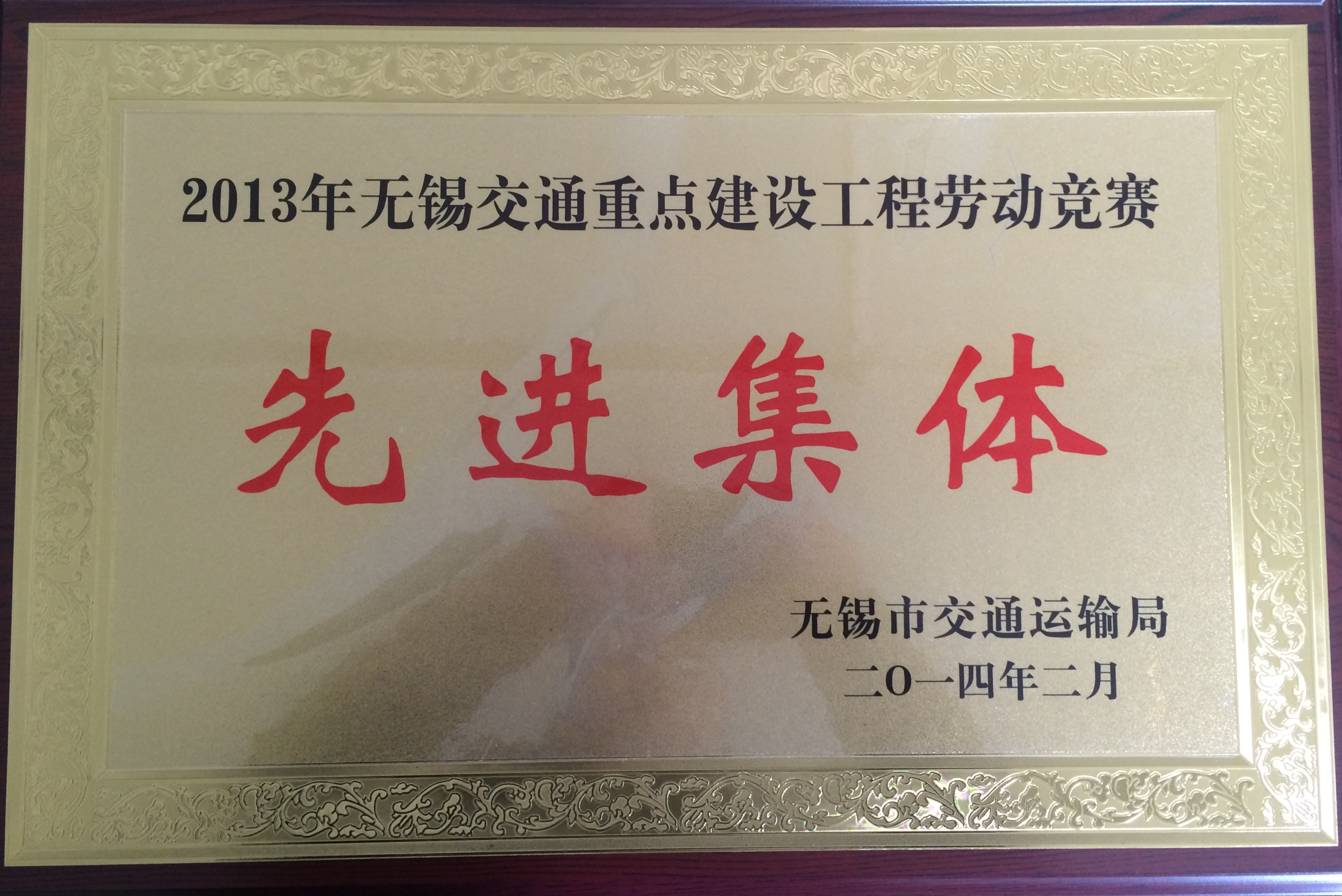江苏通航建设工程有限公司锡澄运河HD7标项目部在2013年度无锡交通重点建设工程劳动竞赛中被无锡市交通运输局表彰为先进集体。