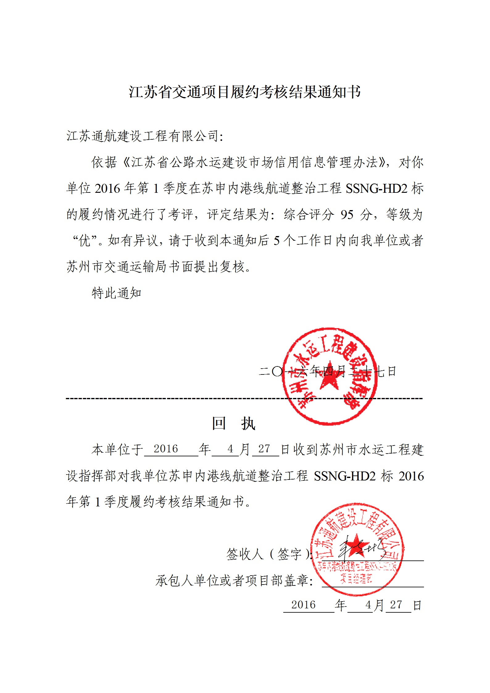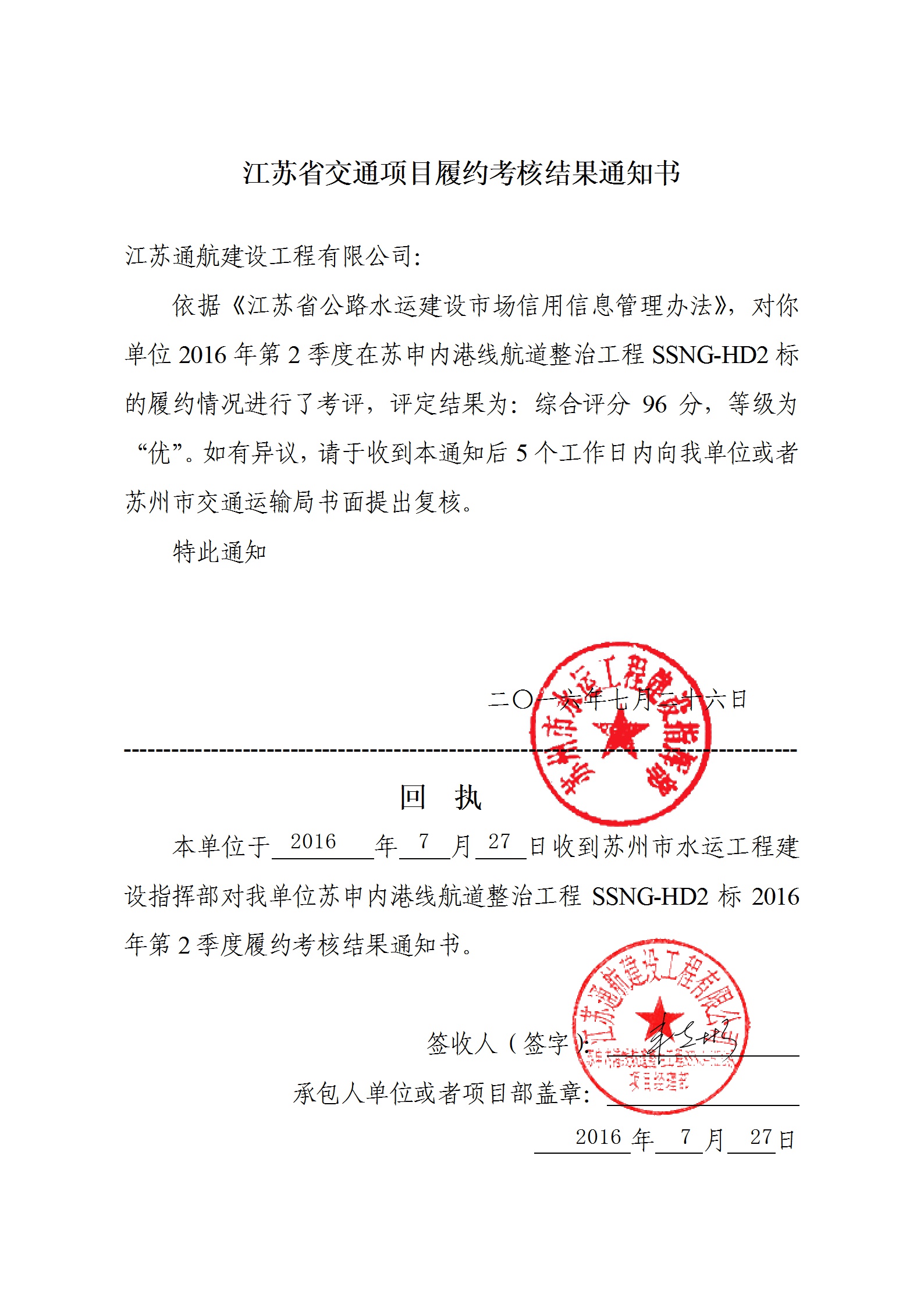 苏申内港线SSNG-HD2标履约考核再得“优”